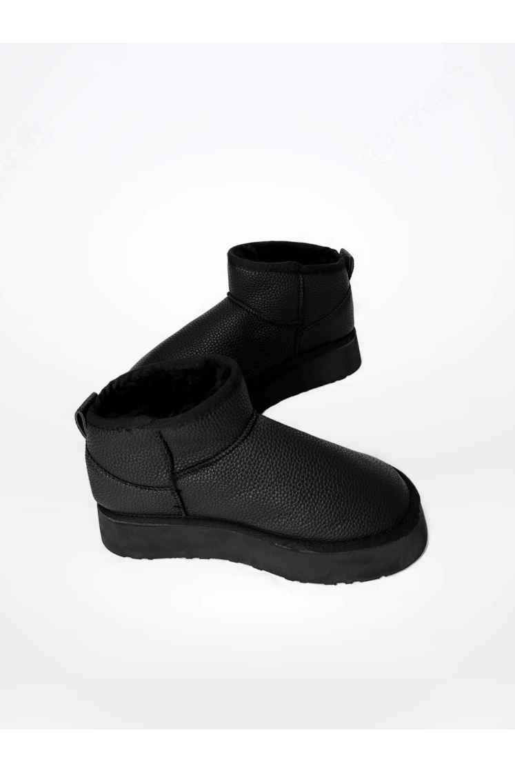 Siyah Renk Deri Görünümlü Kısa UGG Bot – İçi Kürklü, Günlük & Kışlık Rahat Bot